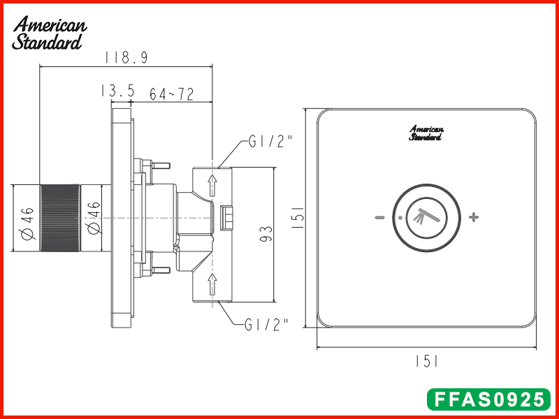 Bản vẽ kỹ thuật bộ điều chỉnh sen âm tường American Standard FFAS0925