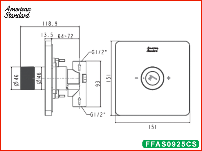 Bản vẽ kỹ thuật bộ điều chỉnh sen âm tường American Standard FFAS0925CS