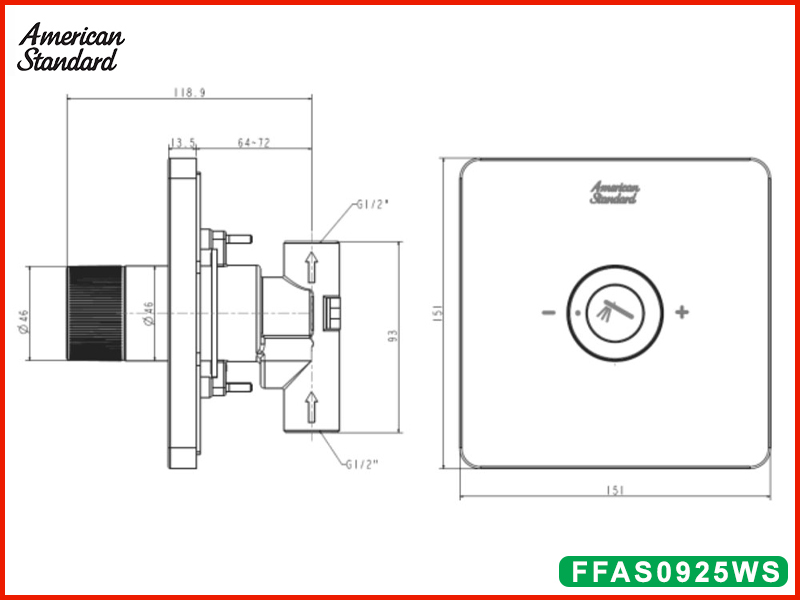 Bản vẽ kỹ thuật bộ điều chỉnh sen âm tường American Standard FFAS0925WS