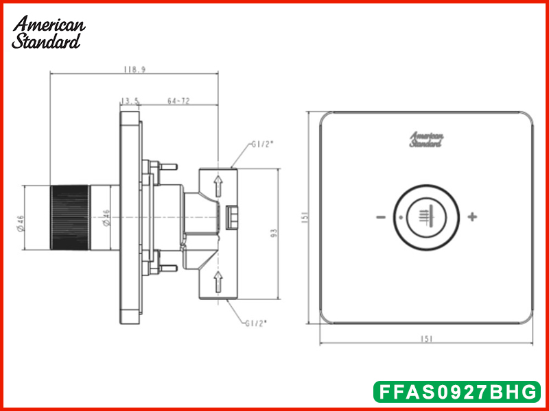 Bản vẽ kỹ thuật bộ điều chỉnh sen âm tường Aemerican Standard FFAS0927BHG