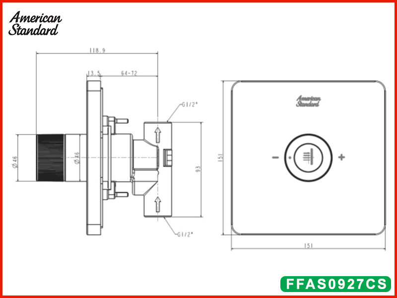 Bản vẽ kỹ thuật bộ điều chỉnh sen âm tường American Standard FFAS0927CS