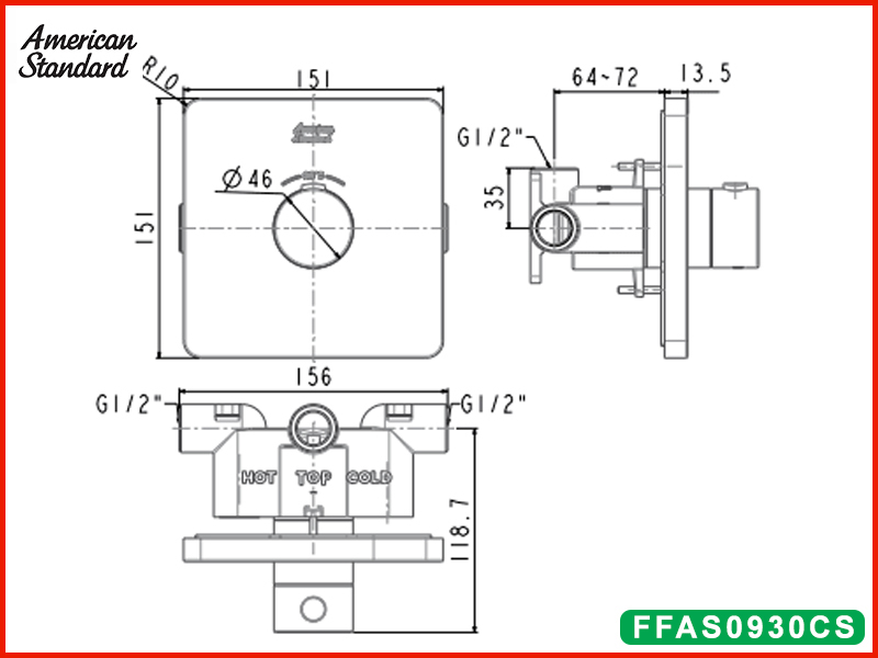 Bản vẽ kỹ thuật bộ trộn nhiệt độ âm tường American Standard FFAS0930CS