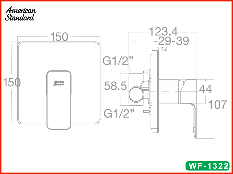 Bản vẽ kỹ thuật bộ trộn nóng lạnh âm tường American Standard WF-1322