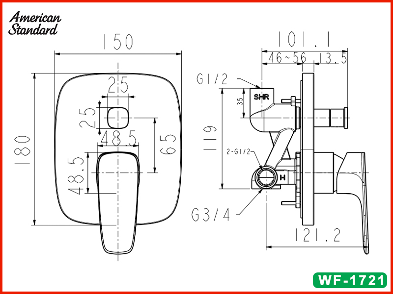 Bản vẽ kỹ thuật bộ trộn nóng lạnh âm tường American Standard WF-1721