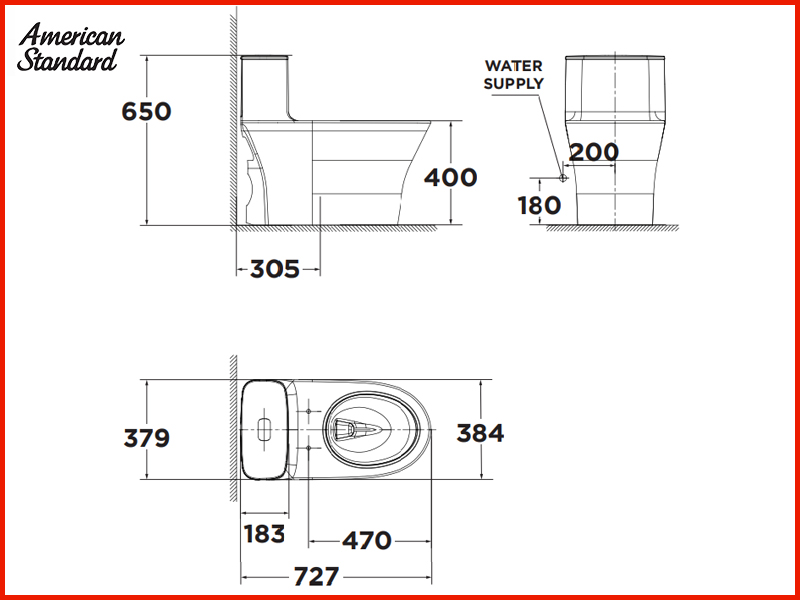 Bản vẽ kỹ thuật bồn cầu 1 khối American Standard WP-1880