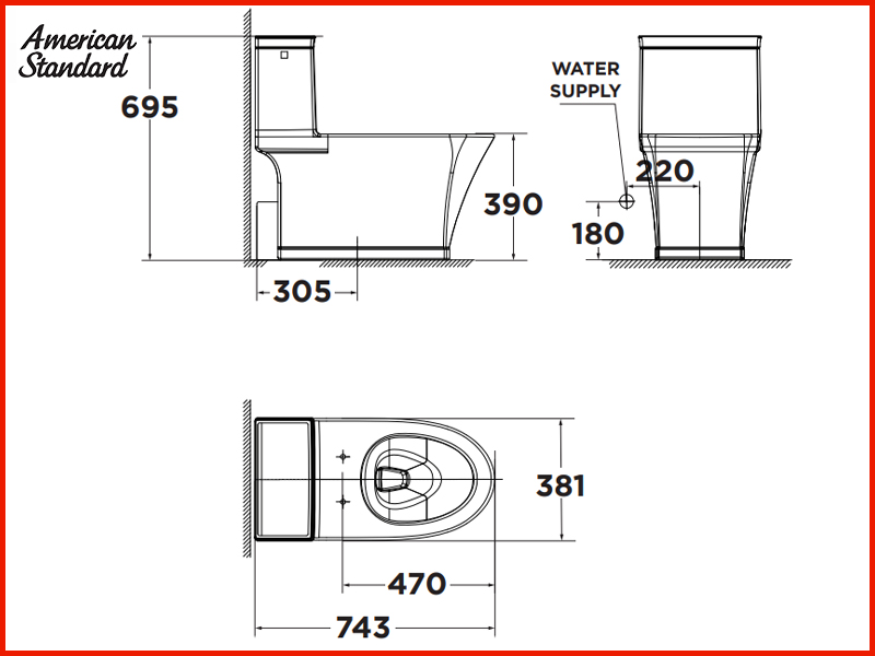 Bản vẽ kỹ thuật bồn cầu 1 khối American Standard WP-2025