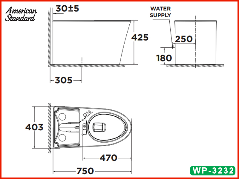 Bản vẽ kỹ thuật bồn cầu 1 khối American Standard Studio S WP-3232
