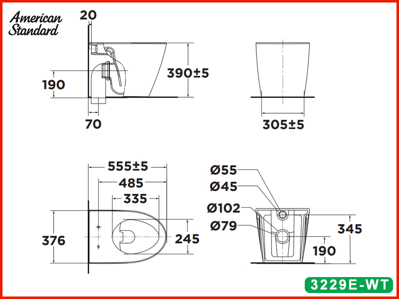 Bản vẽ kỹ thuật bồn cầu đặt sàn American Standard 3229E-WT