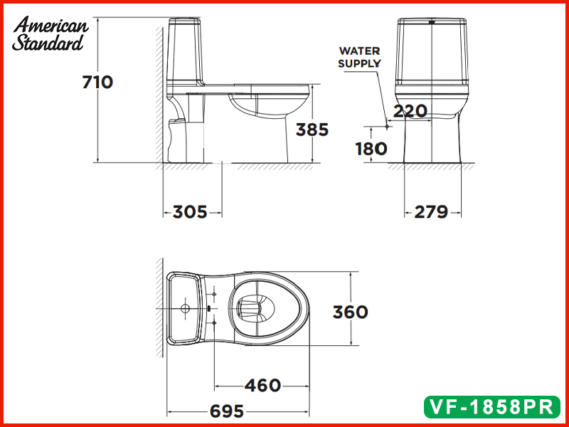 Bản vẽ kỹ thuật bồn cầu nắp điện tử American Standard VF-1858PR