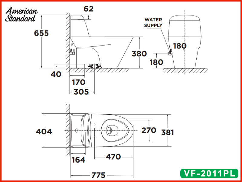 Bản vẽ kỹ thuật bồn cầu nắp điện tử American Standard VF-2011PL