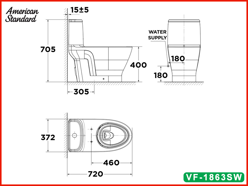 Bản vẽ kỹ thuật bồn cầu nắp rửa cơ American Standard VF-1863SW
