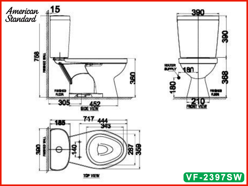 Bản vẽ kỹ thuật bồn cầu nắp rửa cơ American Standard VF-2397SW
