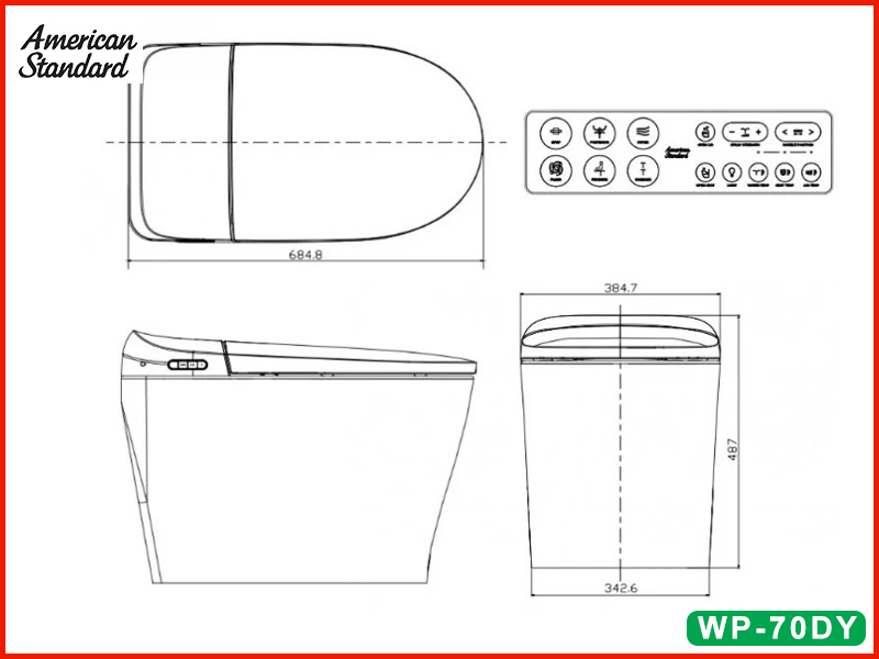 Bản vẽ kỹ thuật bồn cầu thông minh American Standard E-Lite WP-70DY