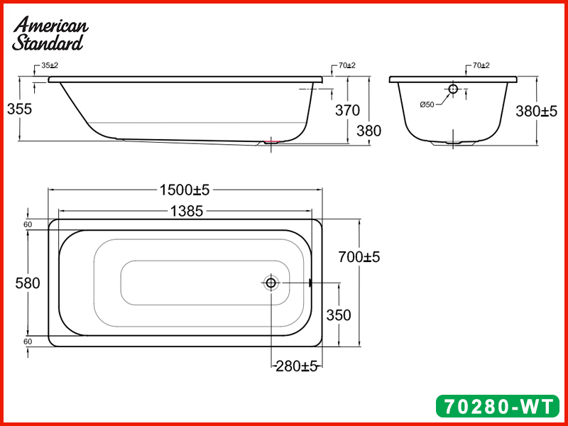 Bản vẽ kỹ thuật bồn tắm âm sàn American Standard 70280-WT