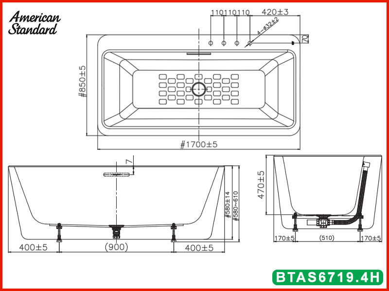 Bản vẽ kỹ thuật bồn tắm American Standard BTAS6719.4H