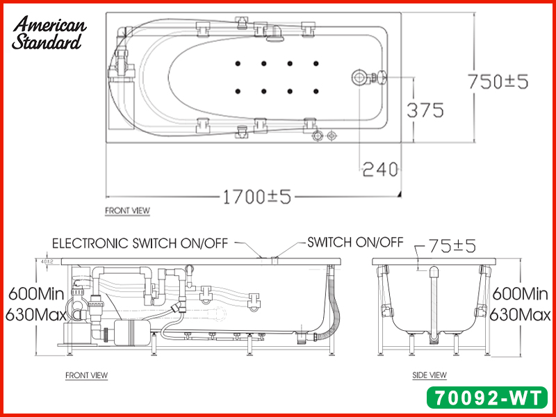 Bản vẽ kỹ thuật bồn tắm thủy lực American Standard 70092-WT