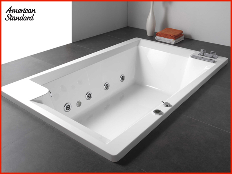 Bồn tắm thủy lực American Standard có thiết kế thoải mái với phần đầu bồn rộng hơn phần chân phù hợp khi để tay và kê đầu.