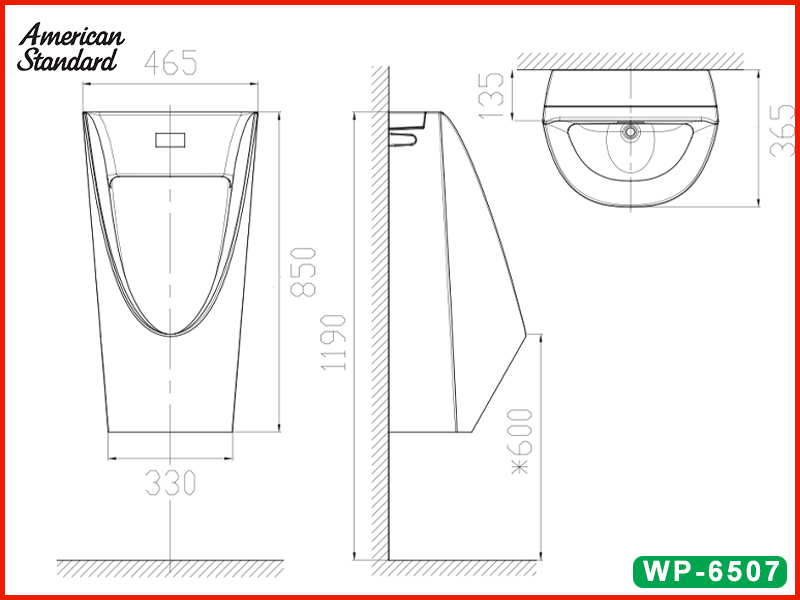 Bản vẽ kỹ thuật bồn tiểu nam dùng pin American Standard WP-6507