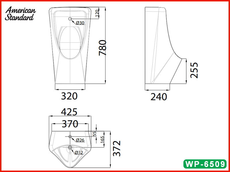Bản vẽ kỹ thuật bồn tiểu nam treo tường American Standard WP-6509