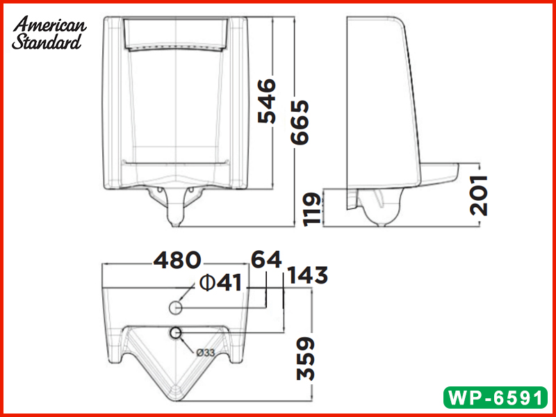 Bản vẽ kỹ thuật bồn tiểu nam treo tường American Standard WP-6591