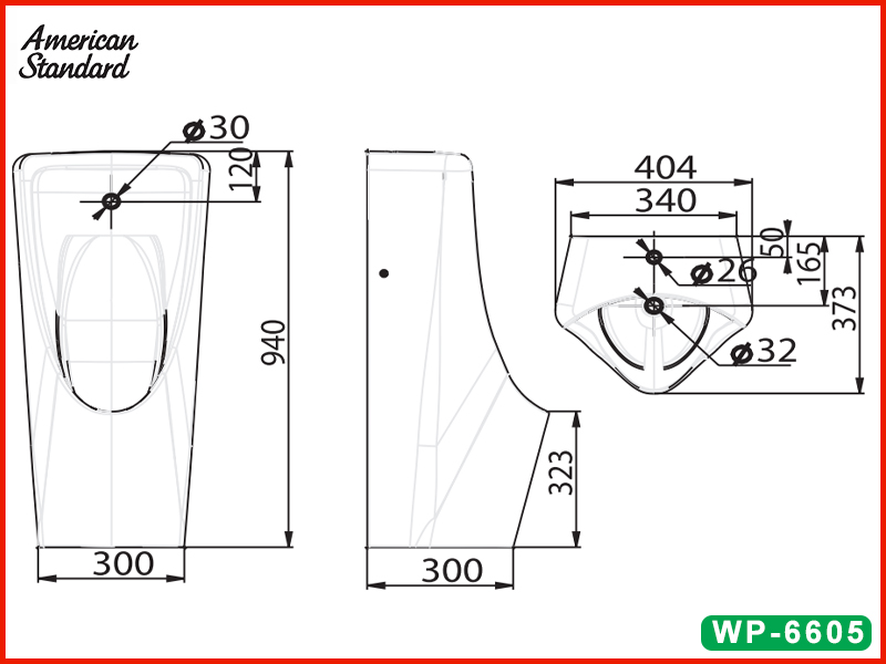 Bản vẽ kỹ thuật bồn tiểu nam đặt sàn American Standard WP-6605