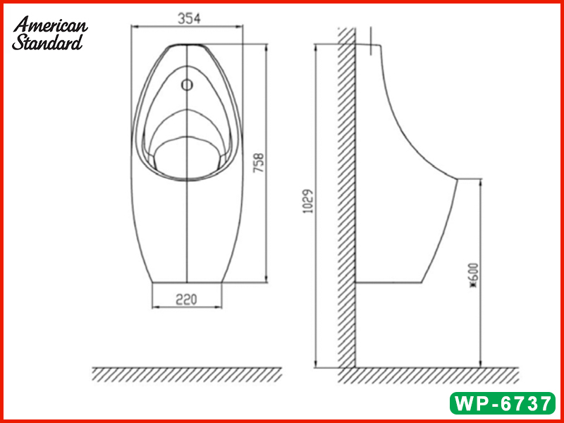 Bản vẽ kỹ thuật bồn tiểu treo tường American Standard WP-6737