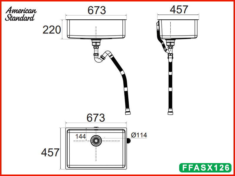 Qua bản vẽ kỹ thuật chậu rửa bát American Standard 673mm FFASX126 bạn có thể biết được kích thước và hình dáng của sản phẩm, giúp cho việc lựa chọn sản phẩm phù hợp với không gian và style của ngôi nhà trở nên dễ dàng hơn.