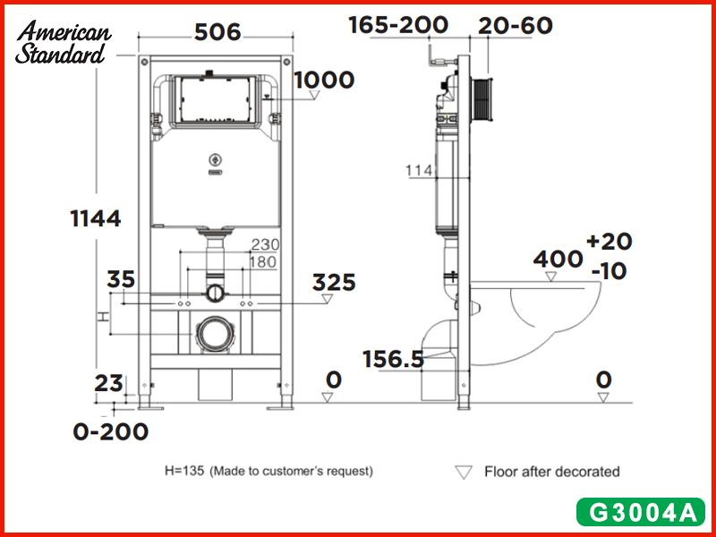 Bản vẽ kỹ thuật két nước âm tường American Standard G3004A