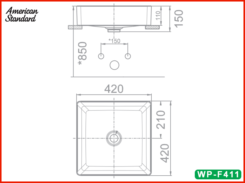 Bản vẽ kỹ thuật lavabo đặt bàn American Standard WP-F411