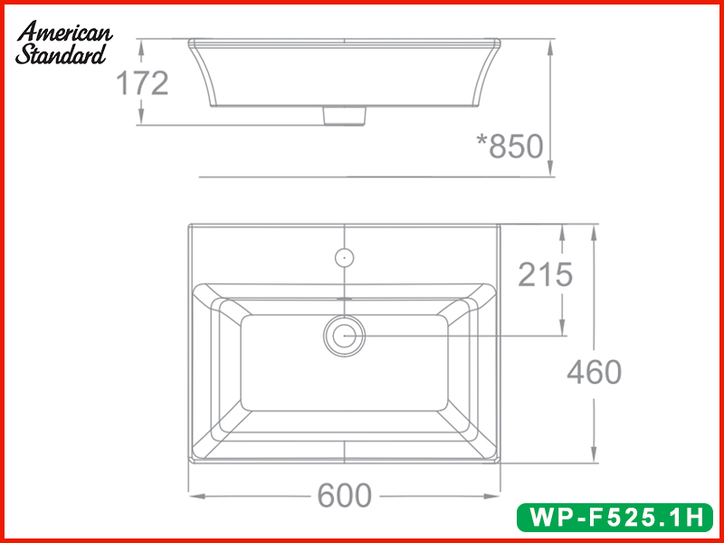 Bản vẽ kỹ thuật lavabo đặt bàn American Standard WP-F525.1H