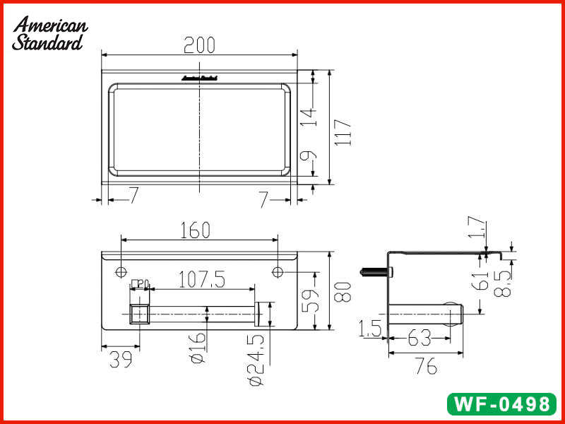 Bản vẽ kỹ thuật móc giấy vệ sinh American Standard WF-0498