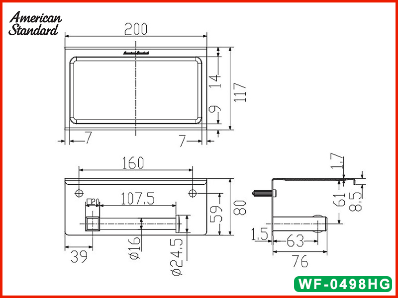 Bản vẽ kỹ thuật móc giấy vệ sinh American Standard WF-0498HG