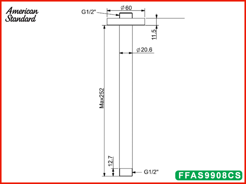 Bản vẽ kỹ thuật thanh nối đầu sen American Standard FFAS9908CS