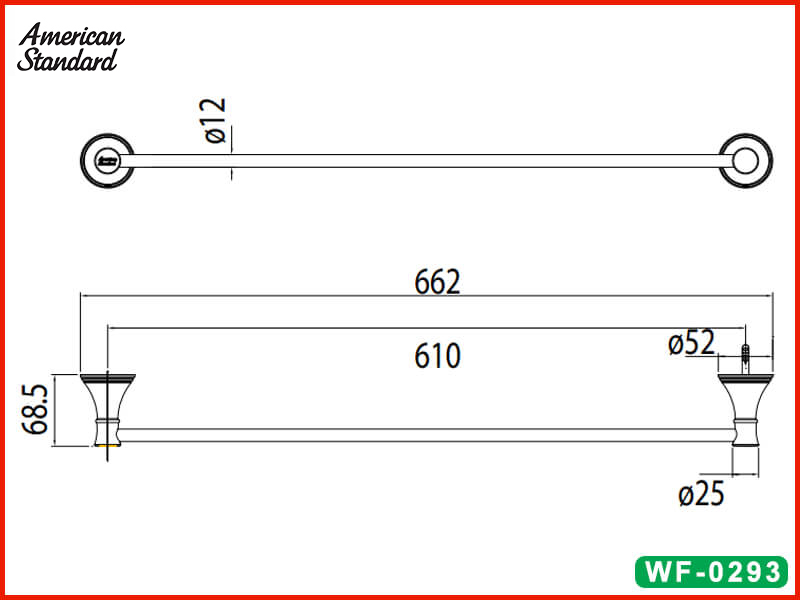 Bản vẽ kỹ thuật thanh treo khăn American Standard WF-0293
