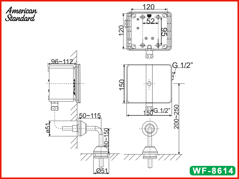 Bản vẽ kỹ thuật van xả bồn tiểu cảm ứng American Standard WF-8614