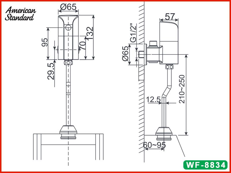 Bản vẽ kỹ thuật van xả bồn tiểu cảm ứng American Standard WF-8834
