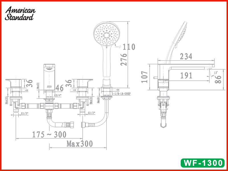 Bản vẽ kỹ thuật vòi bồn tắm gắn bồn American Standard WF-1300