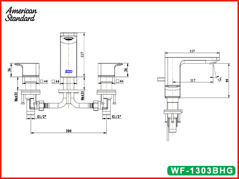 Bản vẽ kỹ thuật vòi lavabo 3 lỗ American Standard WF-1303BHG