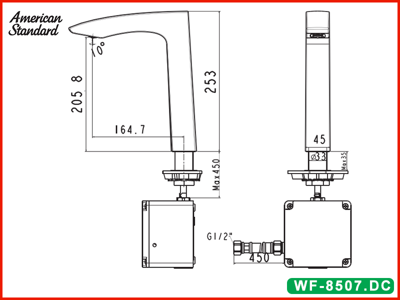 Bản vẽ kỹ thuật vòi lavabo cảm ứng dùng pin American Standard WF-8507.DC