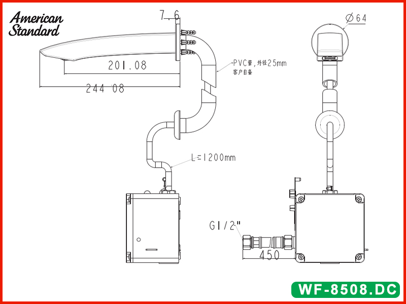 Bản vẽ kỹ thuật vòi lavabo cảm ứng dùng pin American Standard WF-8508.DC