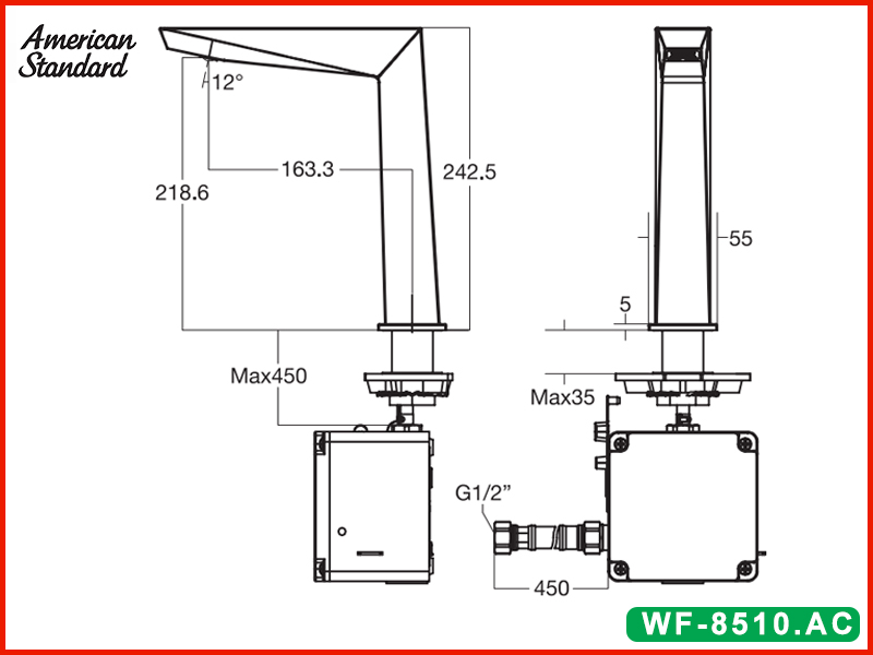 Bản vẽ kỹ thuật vòi lavabo cảm ứng dùng điện American Standard WF-8510.AC