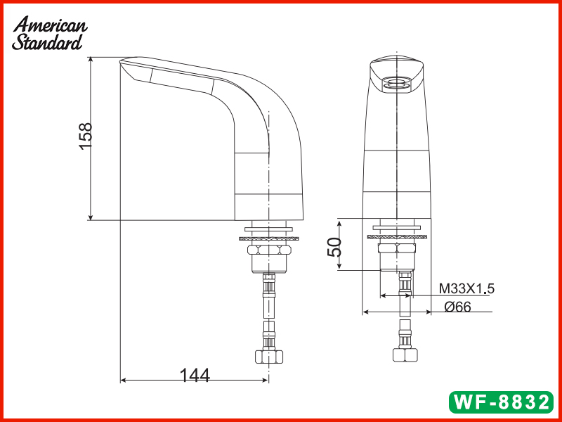 Bản vẽ kỹ thuật vòi lavabo cảm ứng dùng pin American Standard WF-8832