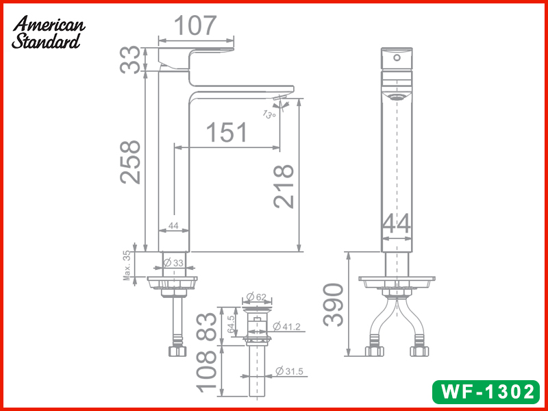 Bản vẽ kỹ thuật vòi lavabo cổ cao American Standard WF-1302