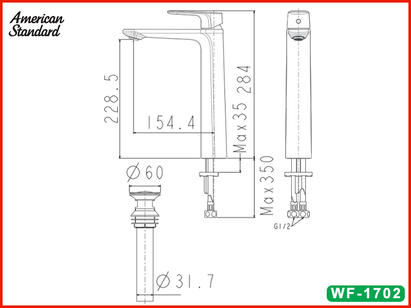 Bản vẽ kỹ thuật vòi lavabo cổ cao American Standard WF-1702