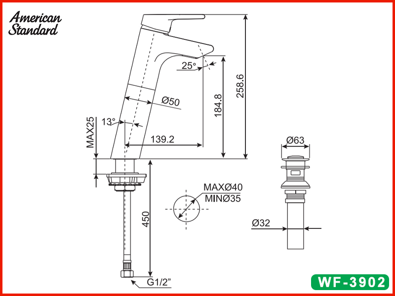 Bản vẽ kỹ thuật vòi lavabo cổ cao American Standard WF-3902