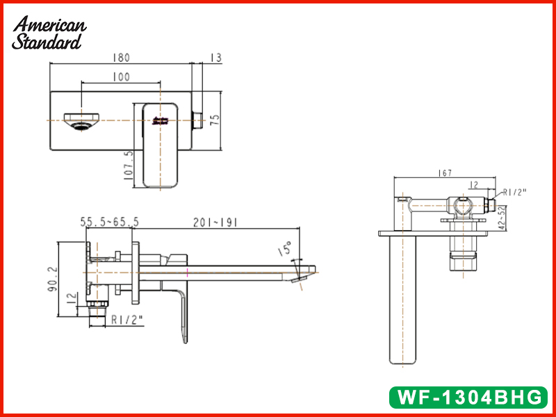Bản vẽ kỹ thuật vòi lavabo gắn tường American Standard WF-1304BHG