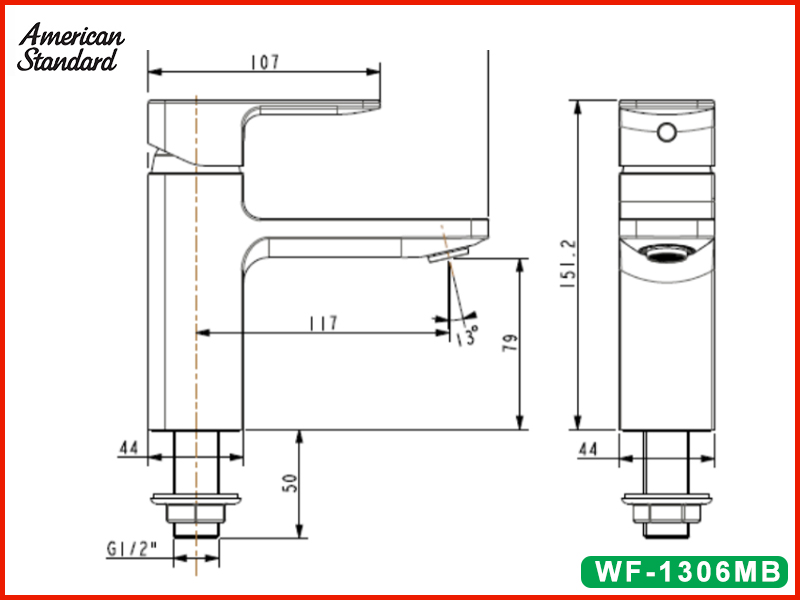 Bản vẽ kỹ thuật vòi lavabo lạnh American Standard WF-1306MB
