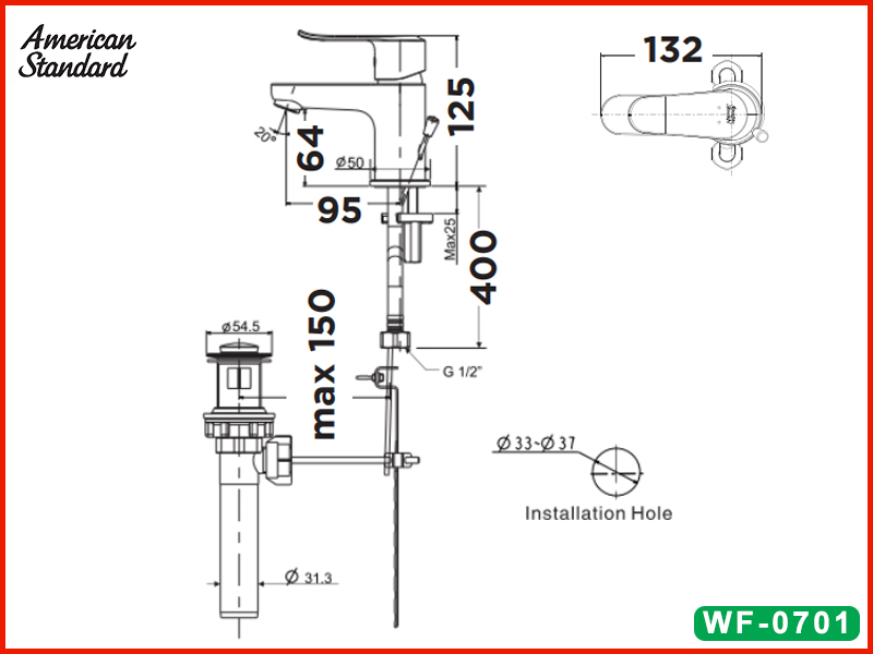 Bản vẽ kỹ thuật vòi lavabo nóng lạnh American Standard WF-0701