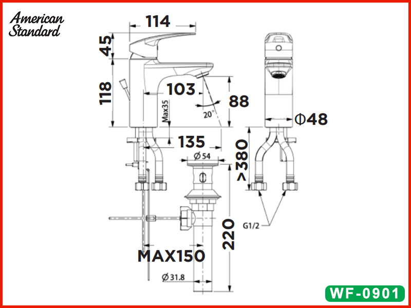 Bản vẽ kỹ thuật vòi lavabo nóng lạnh American StandardWF-0901
