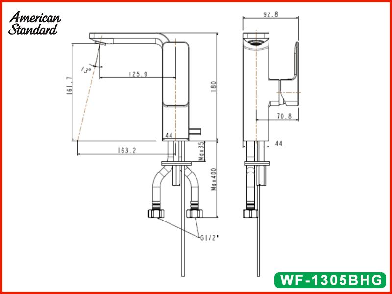 Bản vẽ kỹ thuật vòi lavabo nóng lạnh American Standard WF-1305BHG